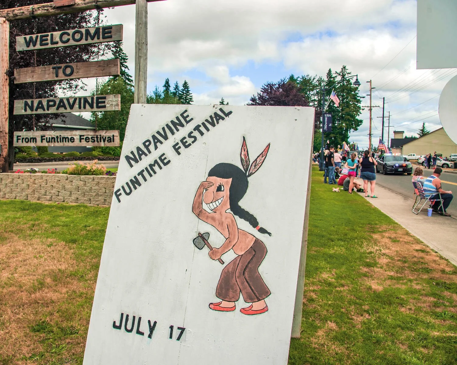 The City of Napavine welcomes Interstate 5 travelers with a sign off Exit 72: “Welcome to Napavine: for a day, or for a lifetime.”